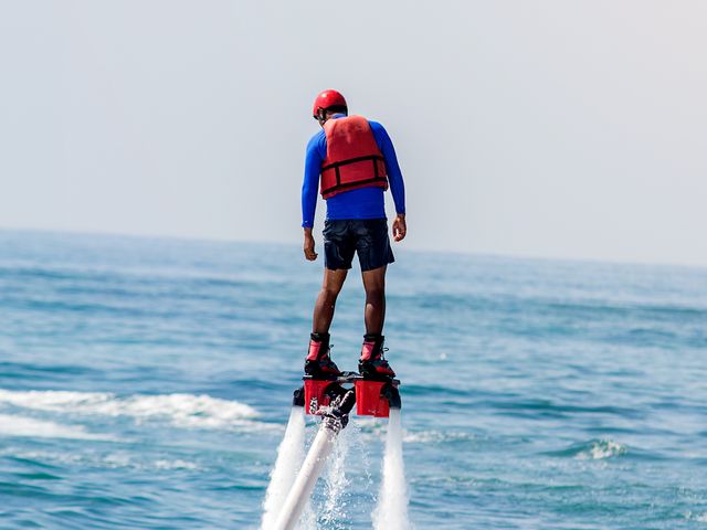 近年話題沸騰中のフライボードは、2012年に全世界で同時スタートした新しいマリンスポーツ。水上バイクから噴射された水圧を利用して空中を舞います。重たい機材もないので女性や初心者でも気軽にチャレンジ可能♪さぁ、バリの空へぶっ飛びましょう!