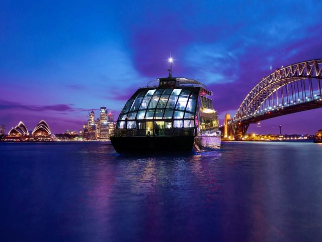 ガラス張りのグラスボートで過ごす優雅なディナークルーズ!270度のパノラマビューでオペラハウスやハーバーブリッジなどの夜景を眺めながら、シェフこだわりの4コースディナーを味わいます。ヴィーガン対応メニューや窓際席プラン、ワインペアリング付きプランなどもご用意あり!