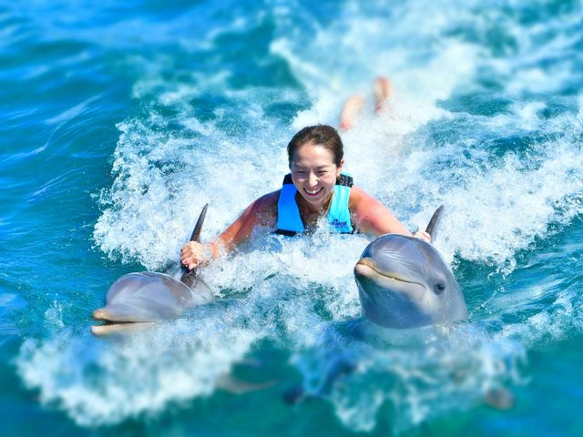 カンクンからフェリーで約30分のところにあるイスラ・ムへーレスでイルカやマナティーとふれあい体験!日本では体験できないアクティブなイルカのプログラムやマナティーとのアクティビティが楽しめます。家族での特別な思い出作りにもおすすめです♪