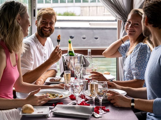 セーヌ川に浮かぶ船という絶好のロケーションから眺めるノートルダム大聖堂、ルーブル美術館、エッフェル塔といったランドマークやパリの美しい風景をじっくりとご堪能いただけます。3コースの本格的なフレンチに舌鼓をうちながらシャンパン片手に優雅なランチクルーズをお楽しみください!初日や旅のしめくくりにぴったりです。
