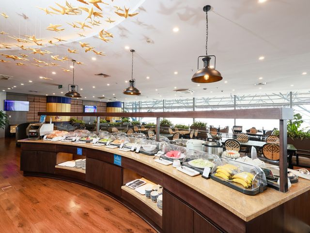 ノイバイ国際空港(HAN)の第1ターミナルにある「SH プレミアムラウンジ・ハノイ(国内線出発)」の事前予約チケット。お食事やドリンクも用意された快適な空間で、フライト前にリラックスできます。Wi-Fi完備、ワークステーションもありビジネス利用にも最適です。