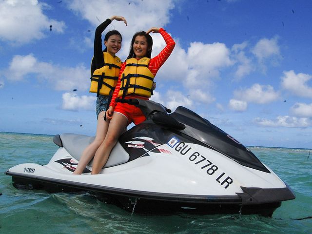 ジェットスキーでツーリングをしながら、イルカウォッチングまで楽しめる充実プラン!初心者の方でもバランスの取りやすいヤマハ製のジェットスキーを利用します。フレンドリーなスタッフと一緒に、グアムの海を全力でお楽しみください♪