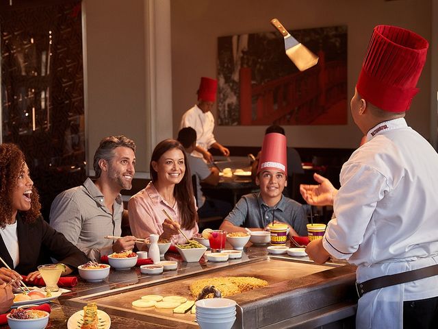 ニューヨークで鉄板焼きといえば「紅花(Benihana)」、日本食ブームの立役者とも言われる老舗レストランです。マンハッタンの中心部にあるので観光の合間にもおすすめ。事前予約なので現地での注文や会計もスムーズです。迫力あるシェフのパフォーマンスが話題のお店で、おいしいディナーをお楽しみください。