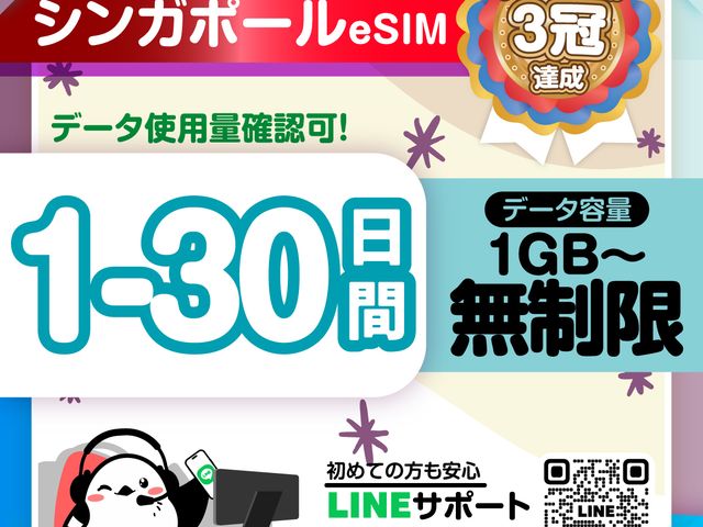 シンガポールで使える便利なプリペイドeSIMの販売です。ご購入後、スマホでの簡単なステップで設定を行い、現地でスムーズにネット利用が可能になります。設定サポートも充実しているので、初めてeSIMを利用する方も安心です。
