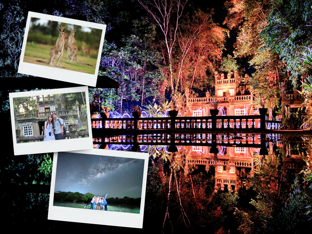 パロネラパークの昼と夜を満喫する半日ツアー!パロネラパークでは明るい時間帯の自由散策と夜のライトアップされた別世界のような美しさを満喫。さらにガイドの説明付き星空観察も(天候により催行できないこともあり)!ワラビーなどの野生動物探しや、オージーパイ(現金のみ)のお店にも訪問します。