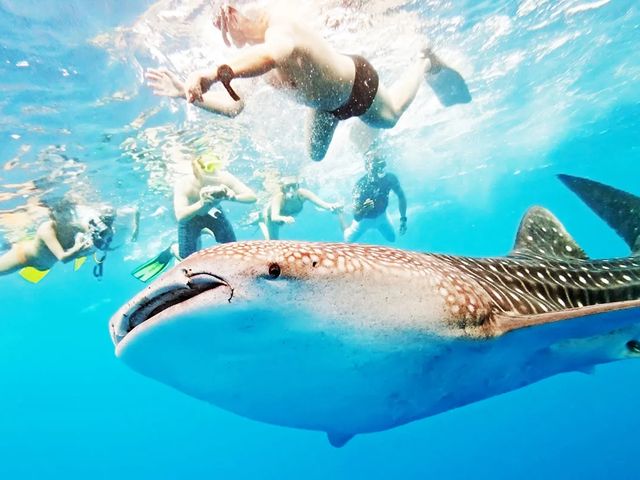 早朝にホテルを出発し、専用車でオスロブへ向かいます(所要時間:約3~4時間)。現地に到着後、シュノーケルマスクとライフジャケットを着用し、いよいよジンベイザメとご対面。野生のジンベイザメが目の前を泳ぐ、まさに