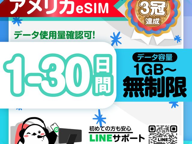 アメリカで使える便利なプリペイドeSIMの販売です。ご購入後、スマホでの簡単なステップで設定を行い、現地でスムーズにネット利用が可能になります。設定サポートも充実しているので、初めてeSIMを利用する方も安心です。