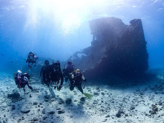 実績あるミクロネシア最大のショップ。1ガイド4名までの少人数制、レベルによるチーム分けで初心者も安心して参加できます。できる限りリクエストに応じてポイントを決定。2日プランなら無理なくしっかり4ダイブ潜れておすすめ。追加ダイブも可能です。