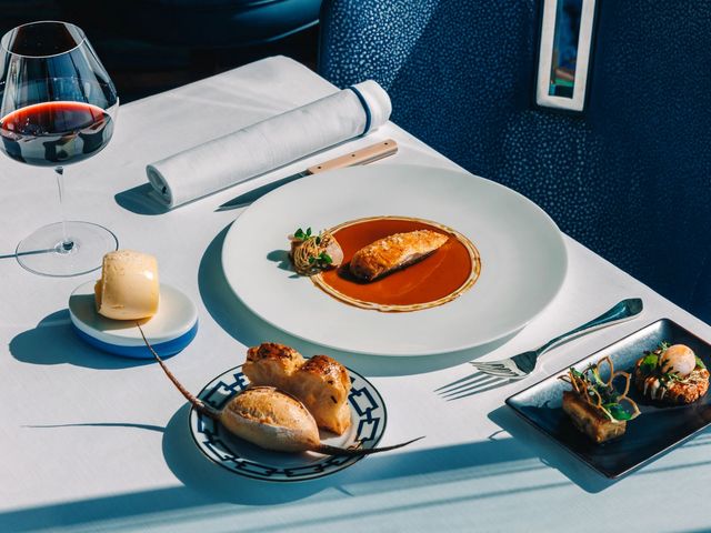 ドバイの最高級ホテル「ブルジュ・アル・アラブ」の27階に位置する天空レストラン「アル・ムンタハ」。開放感と高級感のある店内で、ミシュラン獲得のシェフがふるまうフレンチ&イタリアンのコース料理を楽しめます。アラビア湾を眺めながら、ゆったりとコース料理を堪能しましょう。