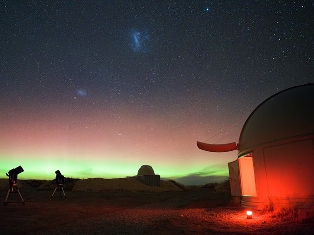 テカポ湖を見下ろすような小高い丘の上にあるコーワンズヒル天文台。テカポからは車で約7分、ドーム内の望遠鏡などは、マウントジョン天文台と同等のものを使用しています。南半球でしか見ることのできない満天の星空を、あなたに。