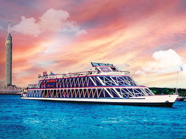 カイロ市内からナイル川ディナークルーズへ!乗船中はディナーの他、エキゾチックなベリーダンスショーやエジプト民族ダンスもご覧いただけます。カイロの夜景と共に素敵な夜のお時間をお過ごしください。