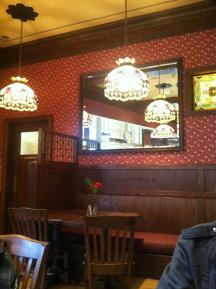 数年前に改装され、アンティーク調のランプや壁紙がとってもお洒落な店内。