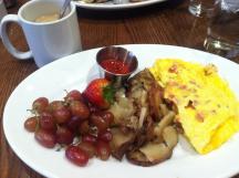 朝食にはオスカーさんのメニュー ”オスカーズ・チョイス(エッグ、朝食ポテト、ベーコンかソーセージ、トースト)$12.00もあるほど。