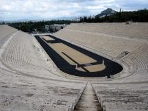 競技場の部分は奥行204メートル、幅33メートルあり、座席の収容人数は68,000人という、巨大な競技場です。現在では運動競技に使われるほか(アテネ・マラソンはここがゴールです)、コンサートが行われることもあります。