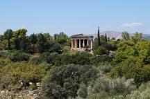 古代アゴラの遺跡に入って右手奥、北西の角に建つ白亜の神殿。鍛冶の神ヘファイストスを奉じた神殿ですが、神殿内部にはヘファイストスの隣にアテーナーのブロンズ像も飾られていたことが分かっています。