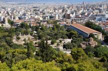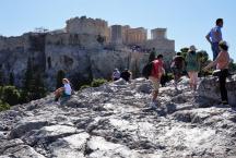 高さ115mほどの低い丘で、正面に20数段の石段、向かって左側には手すりのついた鉄製の階段が用意されています。アクロポリスのプロピュライアを見上げ、古代アゴラの遺跡やアテネ市街を見下ろす眺望はすばらしく、岩に腰かけて古代の歴史を肌で感じることもできます。