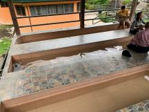 屋外の温泉エリアはキナバル公園の入場チケット(15リンギット)のみで利用できます。小さな浴槽に分かれたスペースと足湯のスペースがあり、浴槽スペースは自分でお湯をためて、入った後抜いていく、というシステム。栓が緩いのでなかなかお湯がたまりません。足湯スペースは常にお湯が張ってあります。