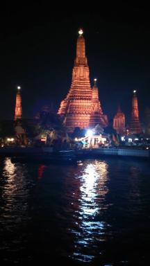 1日のフィナーレは、チャオプラヤ川を優雅にディナークルーズ。ハイライトは暁の寺やエメラルド寺院のライトアップを間近で眺める事が出来ます。また、大きな吊り橋でライトアップが幻想的で美しいラマ8世橋。これらを往復で観れるコースのたっぷり2時間のクルーズ。タイ料理を含めたビュッフェと、船内でも古典舞踊や生バンドも最高の演出。最後に最高のテンションになること間違えなし。