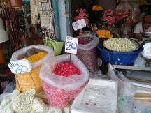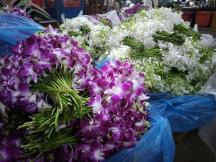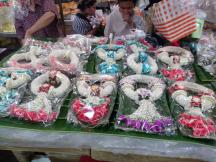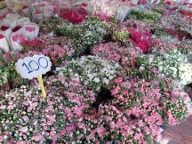 残念ながら、旅行者はここで購入した生花を日本に持って帰れません。せめて花束を買い求め滞在中のホテルのお部屋に飾っても良いですね。この市場には日本では見かけない、花の蕾や花びらだけのプアンマーライ(お供えや贈り物用の花輪)なども売られています。タイでささやかな贈り物をしたい場合に、プアンマーライは大変喜ばれます。薔薇の花の部分だけ50個入り50バーツほどで(花の大きさによって値段が変わります)売られています。ホテルのお風呂に入れてバラ風呂、クレオパトラ気分を味わえるのも旅の醍醐味!(後片付けが大変ですが)です。市場は現金のみで、多少の英語が通じる程度です。
