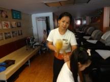 メニューの名はトックセンと言ってコリが激しい場所に木槌で木の棒を使って打ちます。