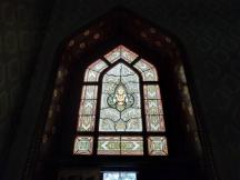 屋根を除く大部分が白い大理石で造られているため別名「大理石寺院」と呼ばれています。寺院には珍しく、西洋建築の影響を受け、窓には仏像が描かれているステンドグラスが取り付けられており、西洋と東洋のみごとな調和を見ることが出来るステンドグラスです。入って来る陽の光がステンドグラスや大理石に反射してそれらが美しく輝く様子は一見の価値があります。