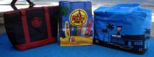 人気のあるエコバック(1ドル~4ドル)は値段も手ごろでデザインもたくさんあります。お土産にも大人気です。防水加工したありビーチにピクニックにも持っていけるタイプのものもあります(写真の右側のブルーのもの)