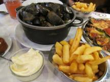 シェ・レオンは、11の小さな家を壁をぶち抜いてつなげたウナギの寝床のような構造。1000席以上の客席で、日に平均1000キロのムール貝を出すと言う。初代レオンさんが始めたのは、実は、フリッツの持ち帰り店が最初。その後、深鍋いっぱいのムール貝の香草蒸しとフリッツの組み合わせが大人気となり、とうとうベルギー人の国民食と言われるまでに。