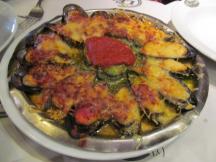 とりあえず、キャセロール(両手鍋)いっぱいのムール貝! いくつかの味付けがあるけれど、パセリやセロリなどの香草を効かせたスペシャルが基本。フリッツ(フレンチフライ)がついて23.85EUR。開いたムール貝をガーリックバターにトマトソース、チーズでグラタンにしたムール・ア・ラ・プロヴァンサルもお奨め(18.75EUR)。旬の季節なら、生ガキならぬ、生ムールの「パケ」にも挑戦(11.55EUR)してみてほしい。ムール貝は4月中旬から7月中旬頃までオフシーズン。それでもムール貝という人は迷わずにシェレオンへ。水温の異なる世界中の海から年間通して調達しているのはシェレオンだけだ。