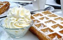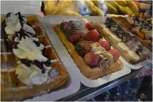 ワッフルは、軽くて四角いブリュッセルワッフルと、ずっしりとして丸っぽいリエージュワッフルがありますが、ここでは是非サクサクの焼き立てのブリュッセルワッフルを食べてみてください。
