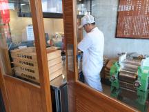 店に入って、まず目に付くのは製麺コーナーです。自家製の麺を使用しているところに、こだわりを感じずにはいられません。つけ麺への期待が膨らみますね。