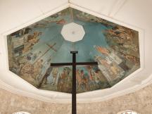 マゼラン・クロスは、八角形のお堂の中にあります。中へ入ると、中央に十字架があり、天井には洗礼式の様子が描かれています。