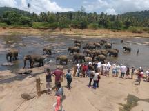特に毎日10:00と14:00に日課として行われる象の水浴びは、大変見ごたえがあります。まず、数十頭の象の群れが象の孤児院を出て公道を歩き川まで水浴びに行きます。川では浅瀬に寝そべっている象、鼻で水しぶきを立てている象、また鼻を絡ませて戯れている親子の象など、見ているだけで、微笑ましく癒された気持ちになります。
