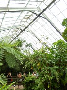 園内には植物が植えられ、小さな川や池があり、熱帯雨林を再現しており、