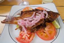 その日の新鮮な白身魚をまるごと揚げた一品ですが、ライムを搾って食べるといくらでも食べられそうなくらい美味しかったです。