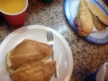 ガーリックバターをぬったフランスパンに、ハムとサラミとチーズを挟んだ、一番シンプルなエコノミカ(economica)はたった18ペソ(約130円)。パンが大きいので1本でばっちりお腹いっぱいになります。