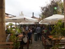 サンブラス教会の真向かいの入り口を抜けると正面の中庭にパラソルのかかったテーブル席とその向こうに大きな土かまどが目に飛び込んできます。