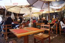 中庭(パティオ)の野外テーブルは魅力的ですが、飛込みではなかなかパティオ席を確保できないので予約を事前にしておく必要があります。また野外テーブルは料理がカマドから出てくるのを観察できる長所はありますが、にわか雨で屋内に移動しなければならないこともあることも覚悟しておきましょう。