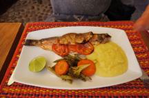 お勧め料理は、瓦のオーブンで調理した鱒料理、ペルー料理定番のロモ・サルタード、そして「クイ(モルモット)」のオーブン焼きだそうです。