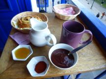 カフェでは唐辛子やハチミツの入ったマヤ風ホットチョコレートをはじめ、さまざまな趣向のホットチョコレートが楽しめ、スイーツも豊富。またクラフトビールも楽しめます。カフェにはレゴシホ広場に面した眺めのいいバルコニー席もあります。