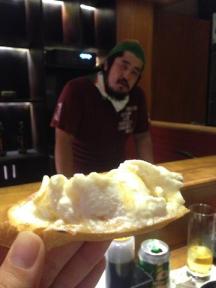 どうしたらこの食感になるの?!と思うくらい、軽いけど味のある、ムースの様な豆腐をフランスパンにのせて、ハチミツをちょろっと掛けて頂きます。