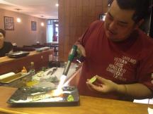 目の前で炙ってもらい、仕上げにライムを絞ったしめ鯖は、お酒の肴にぴったり。