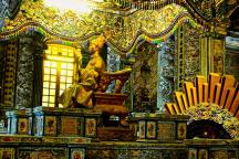 中央には金箔が貼られたカイディン帝の銅像が置かれ、像の約9m下に皇帝の遺体が安置されています。