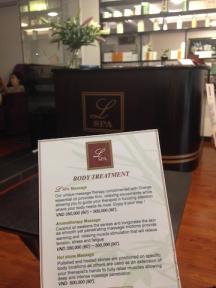 いくつかある施術メニューの中でもオススメなのは、アロマテラピーマッサージ(60分350,000VND、90分500,000VND)。約2800円〜と料金も良心的。