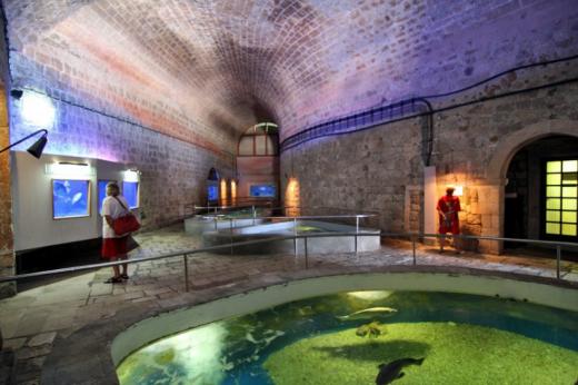 人気の観光スポットのひとつ、ドブロブニク水族館と海洋博物館。旧市街の港に面した、ドブロブニク大聖堂から横に少し入って下ったところにあります。1階が水族館、2階と3階が海洋博物館となっており、観光客でにぎわっています。