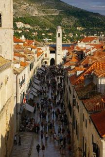 城壁の入り口であるピレ門から、ルジャ広場までに通じるメイン・ストリート。著名ブランド店やカフェ、ホテル、レストラン、民芸品店がたくさんあります。通り自体は長くはなく、およそ300~400メートルくらいなので5分あれば歩けてしまうのですが、ドブロブニクの雰囲気を味わいながら、ゆっくりとショッピングを楽しむためには最高の通りといえるでしょう。
