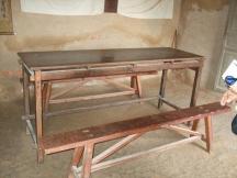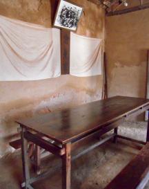 内部には会見のテーブルとなった診療台が残っています。日本側の控え室になった部屋にはパネルが展示されていて、中国語と英語の説明があります。当時の様子がわかる貴重な写真です。門を入って敷地内の左側には、ステッセル将軍が乃木将軍にアラブ産の白馬を贈った場所とされるナツメの木があり、その写真も飾られています。当時のナツメの木は樹齢100年以上といわれる大木で、無数の弾痕があったそうです。