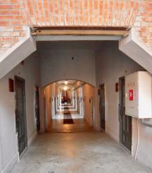 1902年にロシアが建てて1906年まで使い、そのあと1934年まで日本が使った監獄跡です。ロシア時代に造られた灰色の建物に、いくつもの棟が建て増しされています。牢房はロシア時代に85室、日本時代には253室まで増えました。おもに政治犯、思想犯が抑留されていたところです。