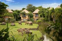 空港から車で約1時間。バリ・サファリ&マリンパークはバリとアフリカのサバンナを融合させた環境に、絶滅危惧種を含める60種以上の動物が生息し、間近でその生態を観察したり、魅力あふれるショーやアニマルライドを楽しむことができる人気のアミューズメントパークです。マラリバー・サファリロッジはまさにこのサファリパークの中にあり、パークの入園料が宿泊代に含まれています。