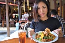 今回私がオーダーしたのは、ご飯の上に様々なおかずが乗ったバリの定番料理、ナシチャンプル(Rp.43,000)。日本では味わえない、サンバルや香辛料の利いたおかずはご飯が進みます!外国人向けのレストランだと辛さが控えめな所が多い中、こちらはドリンクが何杯も進んでしまう程本格的な辛さ!