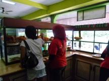 おかずがよく見えないので、ショーケースの内側へ入って、好きなおかずを指さしながら注文します。